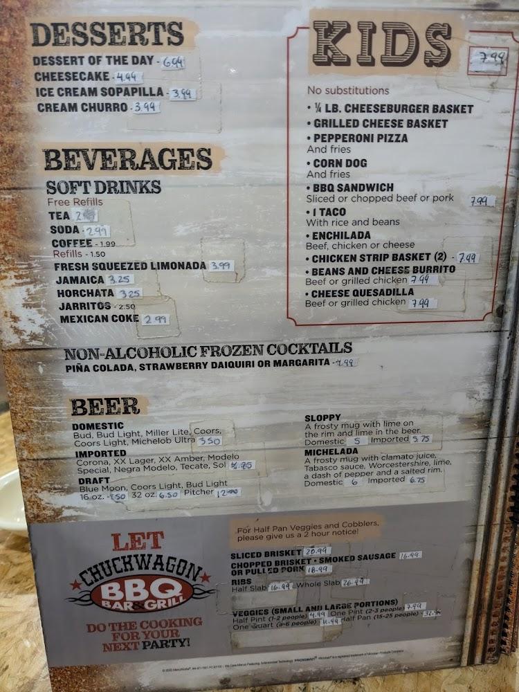 Chuckwagon BBQ presents a menu featuring a broad range of dishes totaling 170 options, making it a culinary treasure. From classic barbecue platters to vibrant Tex-Mex selections, there is something for every palate. The barbecue dinners offer brisket, pulled pork, and hot links, each cooked to perfection.